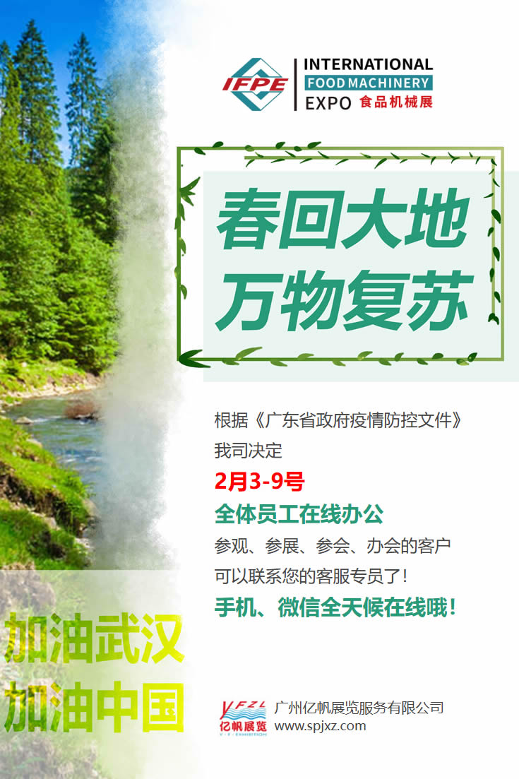 根據(jù)《廣東省政府疫情防控文件》我司決定2月3-9號全體員工在線辦公參觀、參展、參會、辦會的客戶可以聯(lián)系您的客服專員了!手機、微信全天候在線哦!