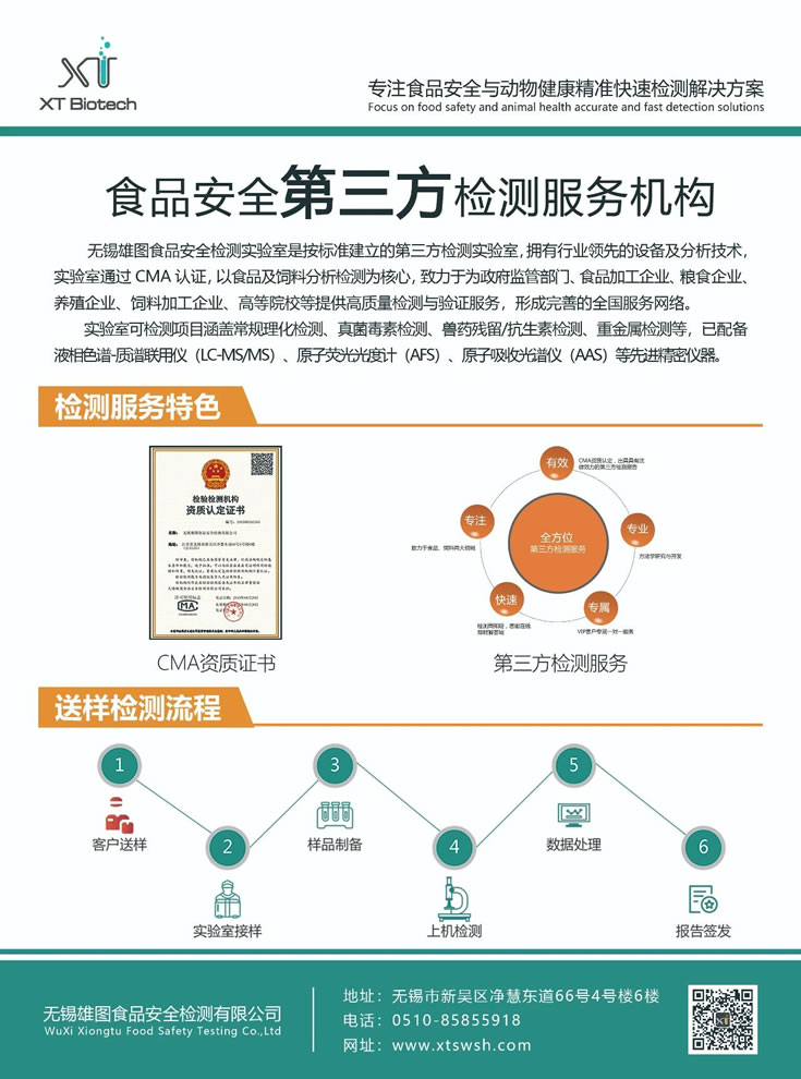 無錫雄圖食品安全檢測實(shí)驗(yàn)室是按標(biāo)準(zhǔn)建立的第三方檢測實(shí)驗(yàn)室,擁有行業(yè)領(lǐng)先的設(shè)備及分析技術(shù),實(shí)驗(yàn)室通過CMA認(rèn)證,以食品級飼料分析檢測為核心,致力于為政府監(jiān)管部門、食品加工企業(yè)、糧食企業(yè)、養(yǎng)殖企業(yè)、飼料加工企業(yè)、高等院校等提供高質(zhì)量檢測與驗(yàn)證服務(wù),形成完善的全國服務(wù)網(wǎng)絡(luò)。