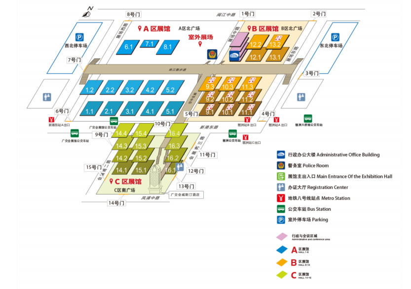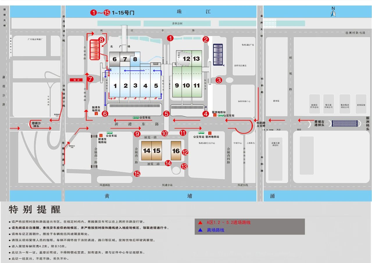 8號線到達新港東站,走A出口到達廣交會展館A區(qū)入口