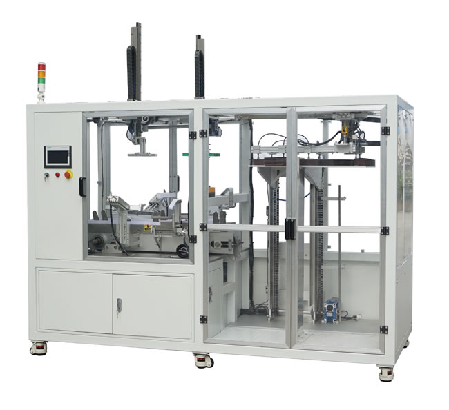 主要適用在:醫(yī)用口罩、食品、醫(yī)用品、玩具、文具、汽車配件、化妝品、五金件、日用品、等小件產(chǎn)品自動(dòng)裝盒。