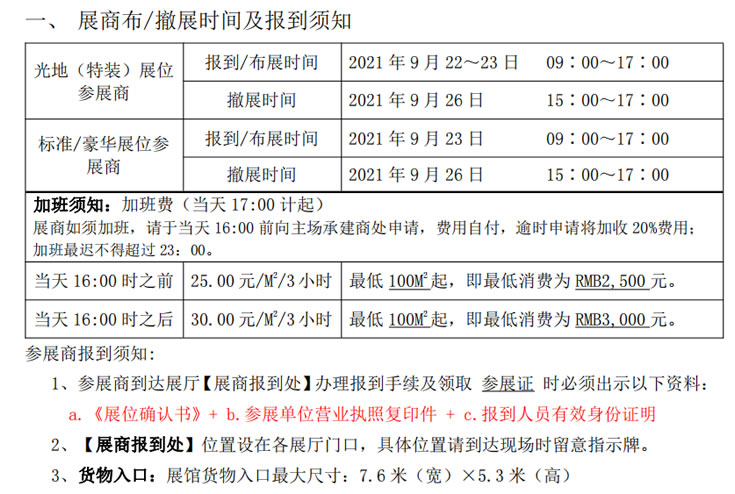 注意事項:所有參展商,在進場、離場和展覽會舉行期間,必須佩戴本次大會所發(fā)相應(yīng)證件,證件于 2021年09月22-23日在展商報到處領(lǐng)取。