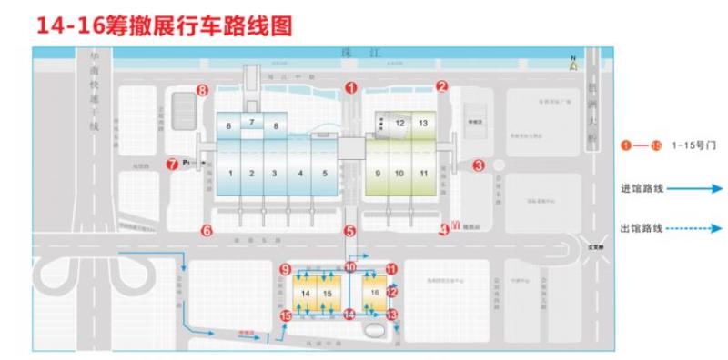 小車(含面包車)由鳳浦中路轉(zhuǎn)入會展南三路,由12號門進(jìn)入地下停車庫停放車輛后,乘坐電梯上達(dá)1/2層(14.1、15.1、15.2)展館,撤離由12號門出會展南三路經(jīng)新港東路離開。