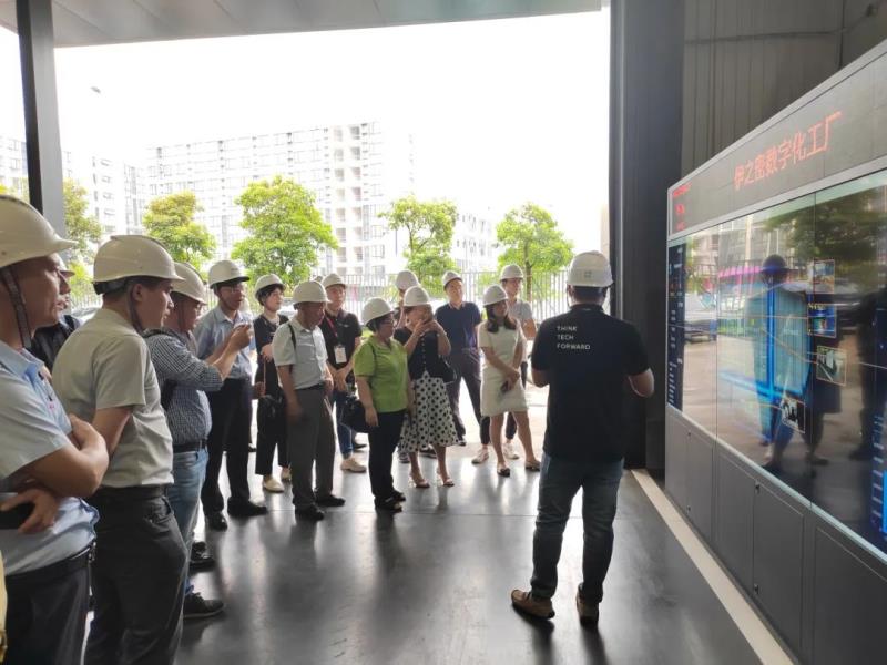 第三階段是赴廣東伊之密精密機(jī)械股份有限公司(簡稱“伊之密”)參訪交流,在伊之密注塑機(jī)事業(yè)部市場總監(jiān)彭德強(qiáng)的帶領(lǐng)下,參觀了數(shù)字化工廠及全球創(chuàng)新中心。
