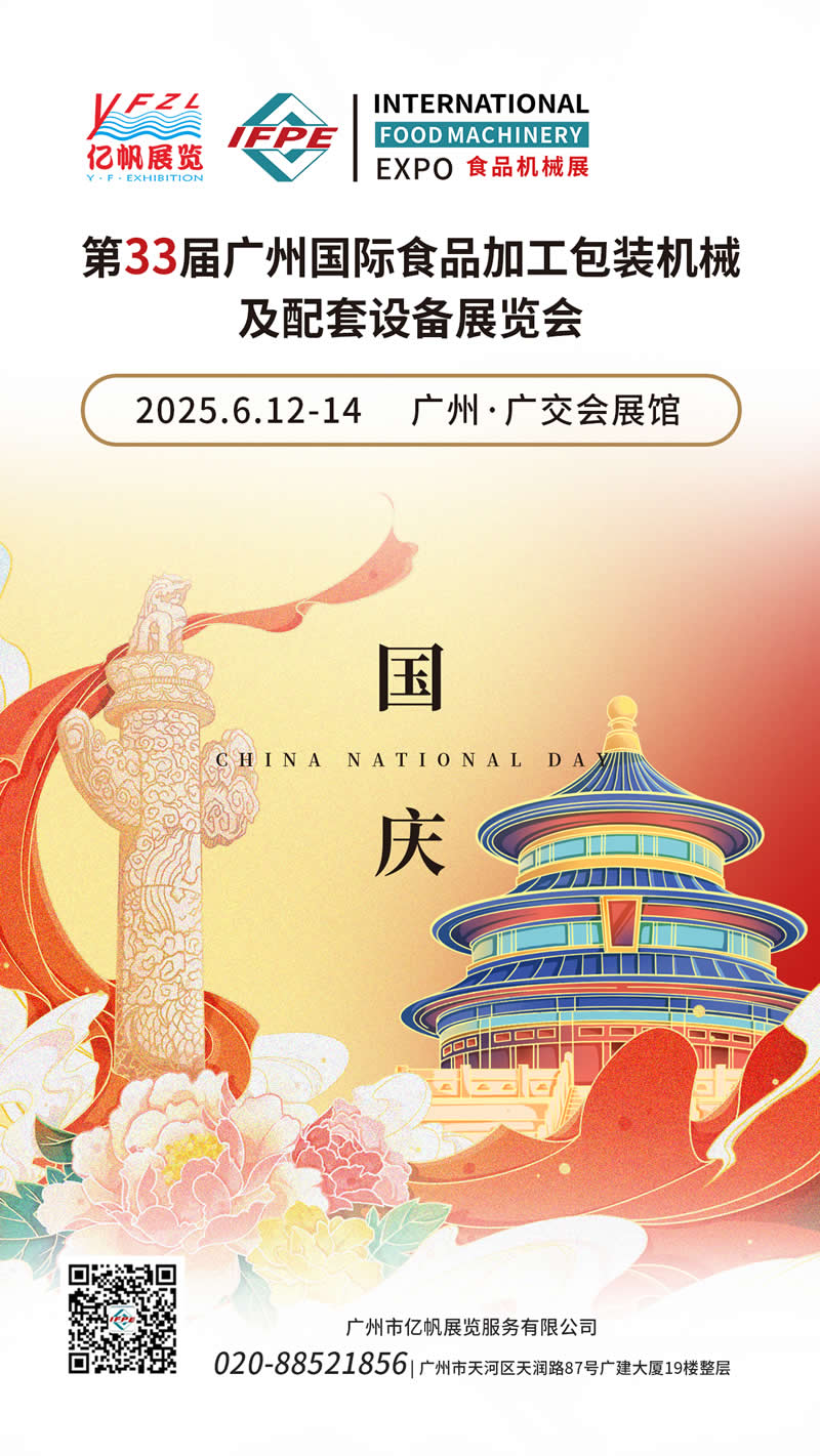 第34屆廣州國際食品加工包裝機械及配套設備展覽會(IFPE)將于2026年6月4-6日在廣州?廣交會展館舉行,IFPE食機展會由廣州市億帆展覽服務有限公司主辦,經(jīng)過多年的積淀與發(fā)展,已成為一個集食品生產(chǎn)、加工、包裝、食品招商全產(chǎn)業(yè)鏈于一體的行業(yè)品牌盛會。IFPE食機展與廣州國際大健康產(chǎn)業(yè)博覽會(IHE China大健康展)同期舉辦,將聯(lián)手為業(yè)內(nèi)人士搭建一個技術交流、促進合作、擴大上下游貿(mào)易、提高品牌和企業(yè)知名度的高品質(zhì)商貿(mào)平臺。