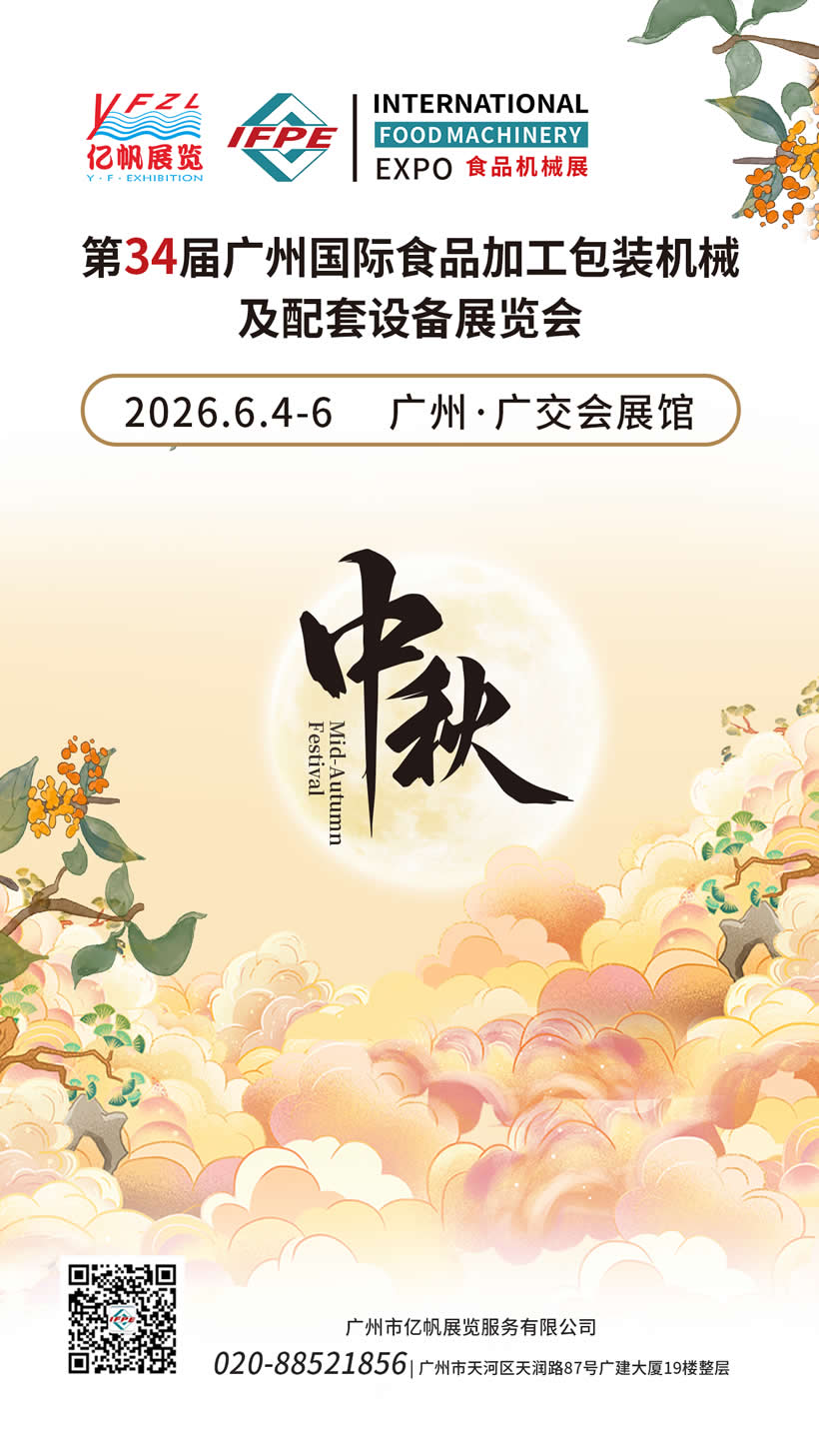第34屆廣州國際食品加工包裝機械及配套設備展覽會(IFPE)將于2026年6月4-6日在廣州?廣交會展館舉行,IFPE食機展會由廣州市億帆展覽服務有限公司主辦,經(jīng)過多年的積淀與發(fā)展,已成為一個集食品生產、加工、包裝、食品招商全產業(yè)鏈于一體的行業(yè)品牌盛會。IFPE食機展與廣州國際大健康產業(yè)博覽會(IHE China大健康展)同期舉辦,將聯(lián)手為業(yè)內人士搭建一個技術交流、促進合作、擴大上下游貿易、提高品牌和企業(yè)知名度的高品質商貿平臺。