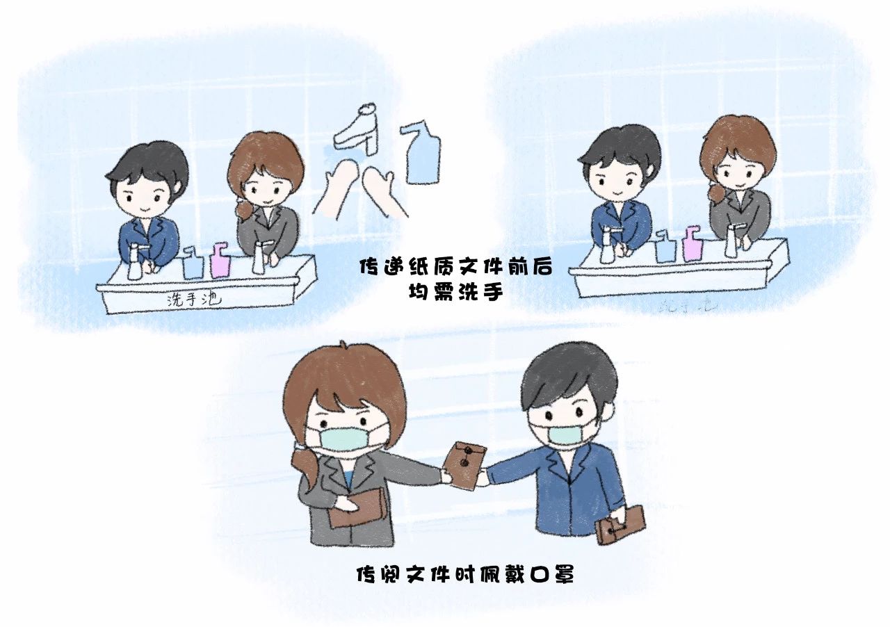 傳遞紙質(zhì)文件前后均需洗手,傳閱文件時佩戴口罩。