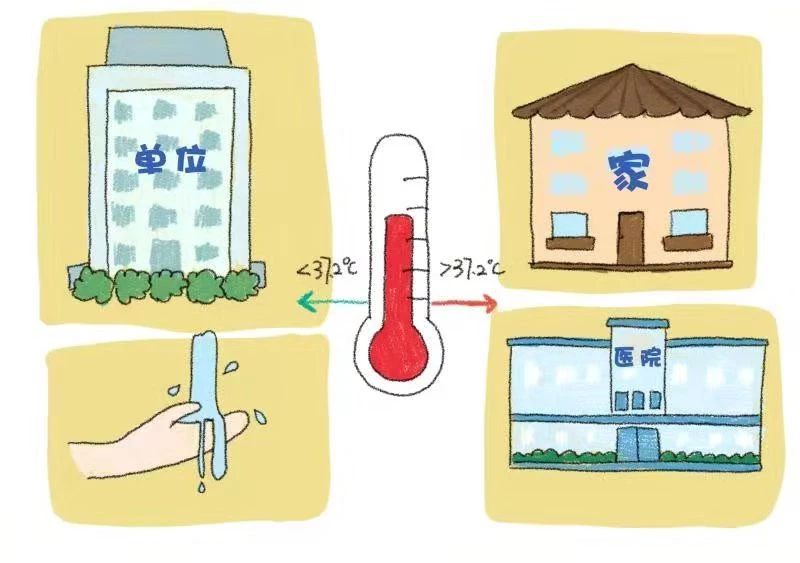 進(jìn)入辦公樓前自覺接受體溫檢測,體溫正??扇霕枪ぷ?,并到衛(wèi)生間洗手。若體溫超過37.2℃,請勿入樓工作,并回家觀察休息,必要時到醫(yī)院就診。