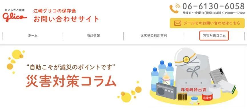 Glico官網(wǎng)設(shè)有災(zāi)害對(duì)策專(zhuān)欄
