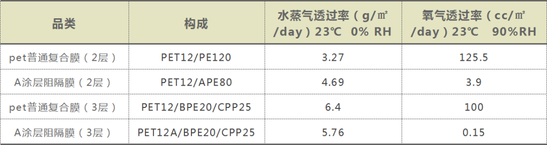 PVA高阻隔涂膜和pet普通復(fù)合膜的阻隔性數(shù)據(jù)對(duì)比