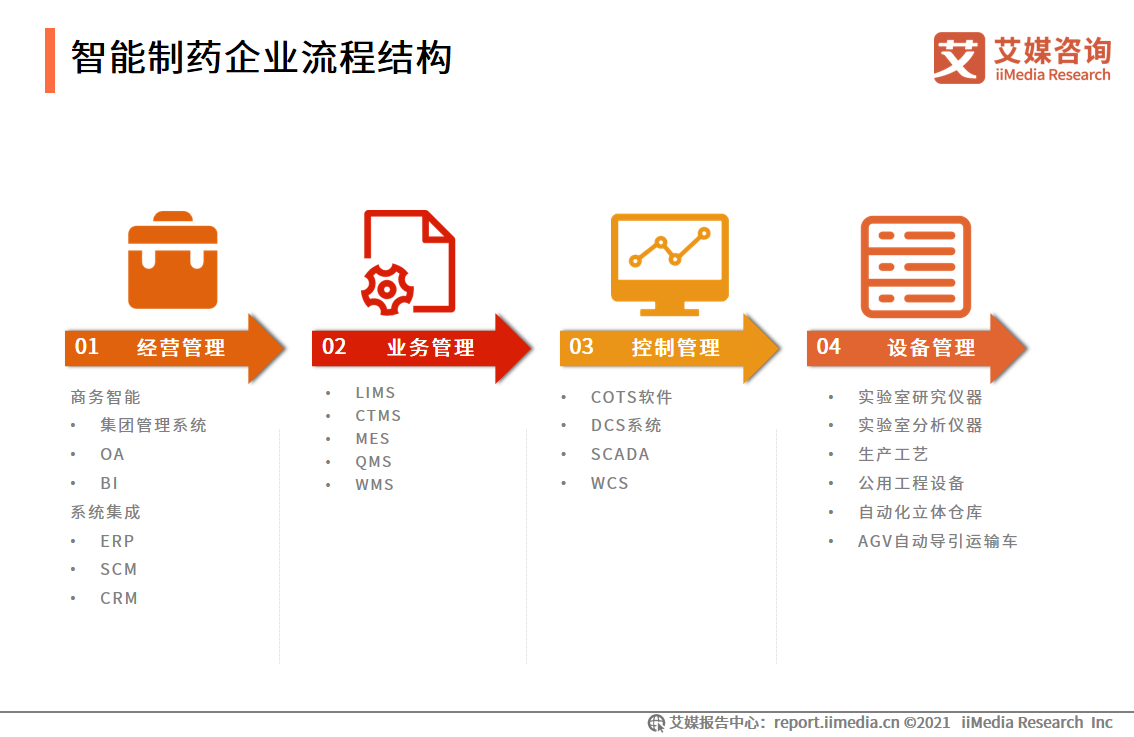 智能制藥企業(yè)涉及企業(yè)資源管理系統(tǒng)(ERP)、制造執(zhí)行系統(tǒng)(MES)、傳感器、執(zhí)行器等多個系統(tǒng),各系統(tǒng)環(huán)環(huán)相扣,與技術(shù)和流程方面的相互依賴。具體分為包含集團管理系統(tǒng)、OA、ERP等的經(jīng)營管理層面、包含LIMS、CTMS、MES等的業(yè)務(wù)管理層面、包含COTS軟件、DCS系統(tǒng)等的控制管理層面和包含實驗室研究和分析儀器等的設(shè)備管理層面。