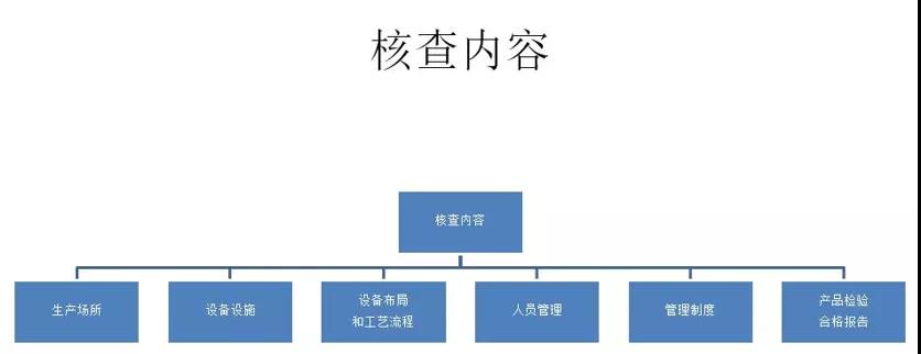現(xiàn)場核查范圍主要包括生產(chǎn)場所、設(shè)備設(shè)施、設(shè)備布局和工藝流程、人員管理、管理制度及其執(zhí)行情況,以及按規(guī)定需要查驗(yàn)試制產(chǎn)品檢驗(yàn)合格報告。a.在生產(chǎn)場所方面,核查申請人提交的材料是否與現(xiàn)場一致,其生產(chǎn)場所周邊和廠區(qū)環(huán)境、布局和各功能區(qū)劃分、廠房及生產(chǎn)車間相關(guān)材質(zhì)等是否符合有關(guān)規(guī)定和要求。申請人在生產(chǎn)場所外建立或者租用外設(shè)倉庫的,應(yīng)當(dāng)承諾符合《食品、食品添加劑生產(chǎn)許可現(xiàn)場核查評分記錄表》中關(guān)于庫房的要求,并提供相關(guān)影像資料。必要時,核查組可以對外設(shè)倉庫實(shí)施現(xiàn)場核查。b在設(shè)備設(shè)施方面,核查申請人提交的生產(chǎn)設(shè)備設(shè)施清單是否與現(xiàn)場一致,生產(chǎn)設(shè)備設(shè)施材質(zhì)、性能等是否符合規(guī)定并滿足生產(chǎn)需要;申請人自行對原輔料及出廠產(chǎn)品進(jìn)行檢驗(yàn)的,是否具備審查細(xì)則規(guī)定的檢驗(yàn)設(shè)備設(shè)施,性能和精度是否滿足檢驗(yàn)需要。c.在設(shè)備布局和工藝流程方面,核查申請人提交的設(shè)備布局圖和工藝流程圖是否與現(xiàn)場一致,設(shè)備布局、工藝流程是否符合規(guī)定要求,并能防止交叉污染。實(shí)施復(fù)配食品添加劑現(xiàn)場核查時,核查組應(yīng)當(dāng)依據(jù)有關(guān)規(guī)定,根據(jù)復(fù)配食品添加劑品種特點(diǎn),核查復(fù)配食品添加劑配方組成、有害物質(zhì)及致病菌是否符合食品安全國家標(biāo)準(zhǔn)。d.在人員管理方面,核查申請人是否配備申請材料所列明的食品安全管理人員及專業(yè)技術(shù)人員;是否建立生產(chǎn)相關(guān)崗位的培訓(xùn)及從業(yè)人員健康管理制度;從事接觸直接入口食品工作的食品生產(chǎn)人員是否取得健康證明。e.在管理制度方面,核查申請人的進(jìn)貨查驗(yàn)記錄、生產(chǎn)過程控制、出廠檢驗(yàn)記錄、食品安全自查、不安全食品召回、不合格品管理、食品安全事故處置及審查細(xì)則規(guī)定的其他保證食品安全的管理制度是否齊全,內(nèi)容是否符合法律法規(guī)等相關(guān)規(guī)定。f.在試制產(chǎn)品檢驗(yàn)合格報告方面,現(xiàn)場核查時,可以根據(jù)食品添加劑品種,按申請人生產(chǎn)食品添加劑所執(zhí)行的食品安全標(biāo)準(zhǔn)核查試制食品添加劑檢驗(yàn)合格報告。試制產(chǎn)品檢驗(yàn)合格報告可以由申請人自行檢驗(yàn),或者委托有資質(zhì)的食品檢驗(yàn)機(jī)構(gòu)出具。