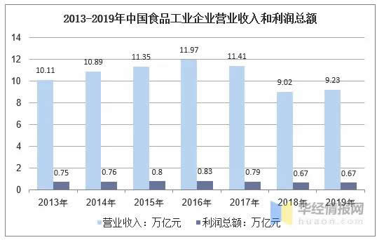 2013-2019年中國食品工業(yè)企業(yè)營業(yè)收入和利潤總額