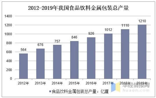 目前我國食品飲料包裝材料主要使用的是金屬材料,2016年,我國食品飲料金屬包裝總產(chǎn)量達到926億罐,2018年達到億罐,2019我國食品飲料金屬包裝總產(chǎn)量達到1210億罐。