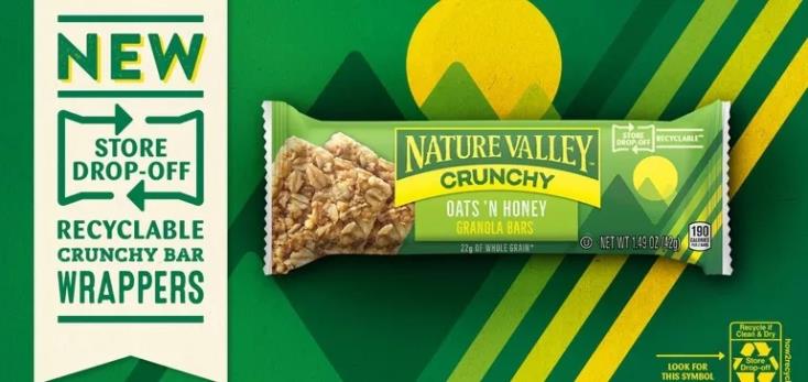 Nature Valley Crunchy格蘭諾拉麥片棒從2021年春天率先采用完全可回收的塑料包裝,本次包裝換新是其母公司General Mills(通用磨坊)實現(xiàn)“2025年全產(chǎn)品包裝100%可回收”的重要一步。這種包裝紙采用獨特的聚乙烯聚合物,General Mills還基于此種新型材料,積極倡導其他品牌投入使用。
