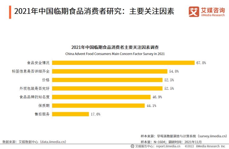 數(shù)據(jù)顯示,67.8%中國(guó)消費(fèi)者關(guān)注食品安全情況,有超過(guò)五成的消費(fèi)者關(guān)注標(biāo)簽信息是否齊全。艾媒咨詢分析師認(rèn)為,食品安全對(duì)于消費(fèi)者來(lái)說(shuō),是重要的考量因素,沒(méi)有食品安全的保障,消費(fèi)者的利益和身心健康均會(huì)受到影響。