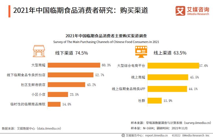 數(shù)據(jù)顯示,中國(guó)臨期食品消費(fèi)者的線下購(gòu)買渠道主要是來(lái)自于大型商超(60.3%)、臨期食品專賣折扣店(52.7%)等;線上購(gòu)買渠道主要是大型綜合電商平臺(tái)(57.6%)等。艾媒咨詢分析師認(rèn)為,臨期食品售賣渠道逐漸齊全,顧客購(gòu)買方便快捷,行業(yè)在未來(lái)將有較好的發(fā)展前景。