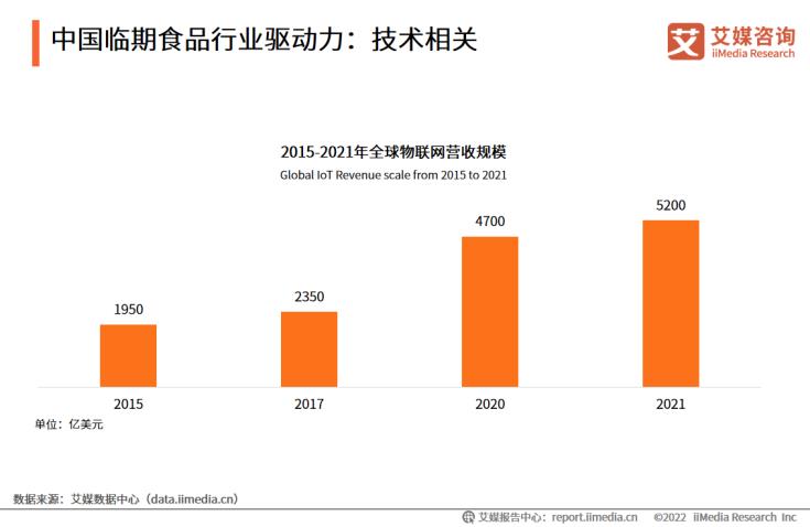 隨著科技發(fā)展,物聯(lián)網(wǎng)技術(shù)將保質(zhì)期信息寫入射頻貼紙,實(shí)現(xiàn)臨期食品自動(dòng)揀選、自動(dòng)發(fā)貨,提升臨期食品安全性和出貨效率。2021年全球物聯(lián)網(wǎng)營(yíng)收規(guī)模已達(dá)到5200億美元,臨期食品安全標(biāo)準(zhǔn)將進(jìn)一步得到提升。