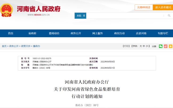9月21日,河南省人民政府辦公廳印發(fā)《河南省綠色食品集群培育行動計劃》(以下簡稱"《行動計劃》”),明確提出,到2025年,建成具有世界影響力的萬億級現(xiàn)代食品集群,建設(shè)綠色食品業(yè)強省,省級以上農(nóng)業(yè)產(chǎn)業(yè)化重點龍頭企業(yè)達到1000家以上,培育千億級企業(yè)2家、百億級企業(yè)10家,新增上市企業(yè)5家以上。