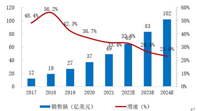 2017-2022年全球服務(wù)機器人市場銷售額及增速