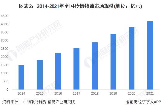 2021年國內(nèi)生鮮零售市場總額超過5.4萬億元,同比漲幅突破8%,呈穩(wěn)步增長態(tài)勢。這些增加的生鮮零售市場規(guī)模必然要依靠冷鏈物流運(yùn)輸,因此帶動(dòng)了我國冷鏈物流市場規(guī)模持續(xù)增長。根據(jù)中物聯(lián)冷鏈委給出的數(shù)據(jù),2021年我國冷鏈物流市場達(dá)到9.2%的增速,市場規(guī)模達(dá)到4184億元。