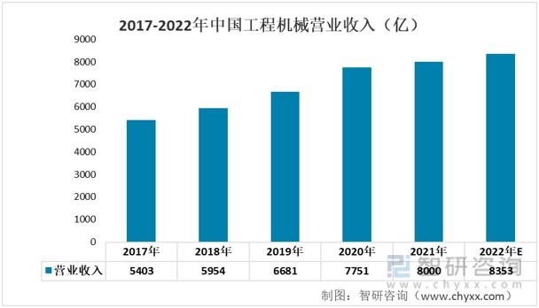 2017-2022年中國工程機(jī)械營業(yè)收入(億)