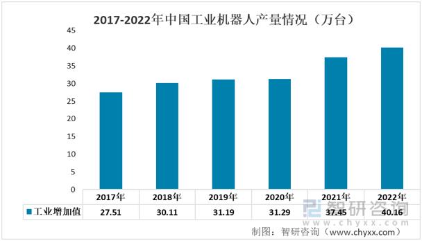 2017-2022年中國工業(yè)機(jī)器人產(chǎn)量情況(萬臺)